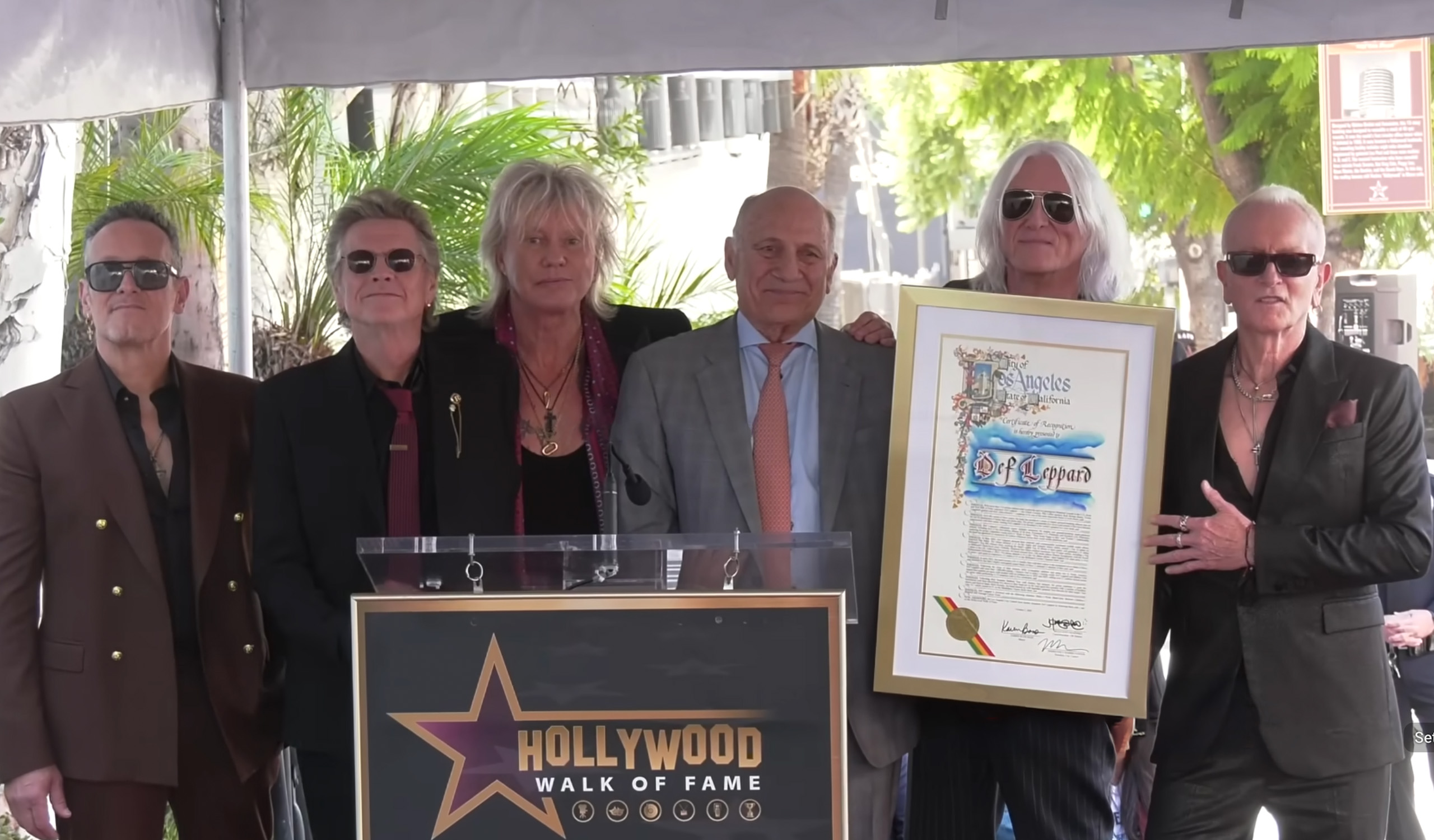 The following day in Hollywood, Jon Bon Jovi appeared for a speech celebrating his friends and peers Def Leppard, who were honoured with a star on the Hollywood Walk of Fame. Joe Elliott, Phil Collen, Rick Savage, Vivian Campbell, and Rick Allen were all in attendance.